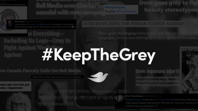 彼女はこれまで髪を金髪に染めていたが、コロナ禍を契機に髪を染めることをやめ、白髪のままとした。白髪でキャスターを務めていたところ、「彼女が白髪になるのを許可したのは誰だ」と、所属テレビ局の副社長が発言。それが、解雇の要因となったとされている。このニュースには、カナダのみならず世界中から大きな非難が巻き起こった。テレビ局側は白髪が理由であることを否定しているが、批判の声は止まらない。これまでステレオタイプな女性の美の基準と闘うことに尽力してきたDoveは、彼らが持っているソーシャルチャネルを活用して#KeepTheGreyキャンペーンを、このニュースからわずか48時間以内で開始したのだ。