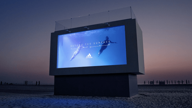 アディダスは体型や民族、能力、宗教に関係なく使用してもらえる新しいインクルーシブなスイムウェアを浸透させるべく、高さ5メートル、深さ3メートルの大型のビルボード型のプールを海岸に設置。1万1500ガロンの水をため、女性に自由に泳いでもらえるプールとして公開した。ここには特殊な水中カメラが設置され、使用した全ての女性の体験をアディダスのオリジナルデジタルポスターに変換、ドバイモールの市内最大のデジタルディスプレイでライブストリーミング配信した。水着で自由闊達(かったつ)に行動する被写体はこれまでアスリートやモデルが中心であったが、自分と同様の立場でその姿を誇らしげにさらす女性たちを数多くの人が目にしたわけだ。これまで漠として持っていた忌避感を、一気に払拭する瞬間だったに違いない。